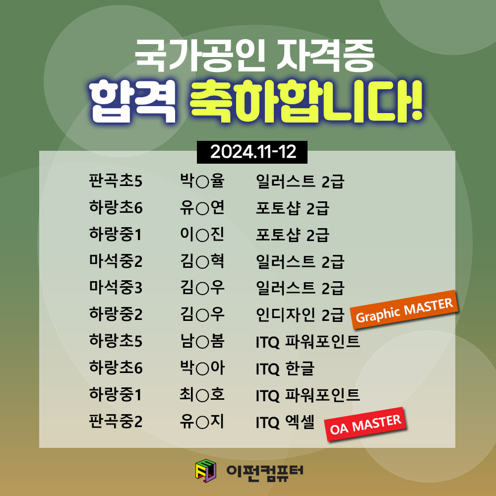 GTQ포토샵, GTQi일러스트, ITQ파워포인트, ITQ엑셀, ITQ한글 합격을 축하합니다 :)