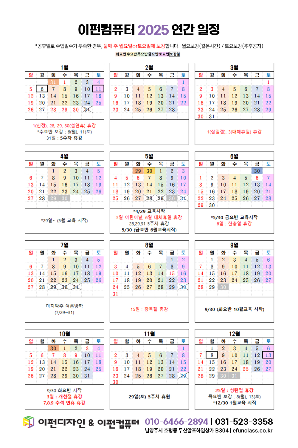 이펀컴퓨터교습소 2025년 정규 교육 스케줄