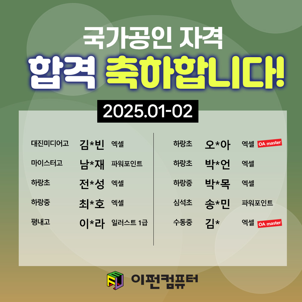 25년 1월-2월 시험 합격을 축하합니다.