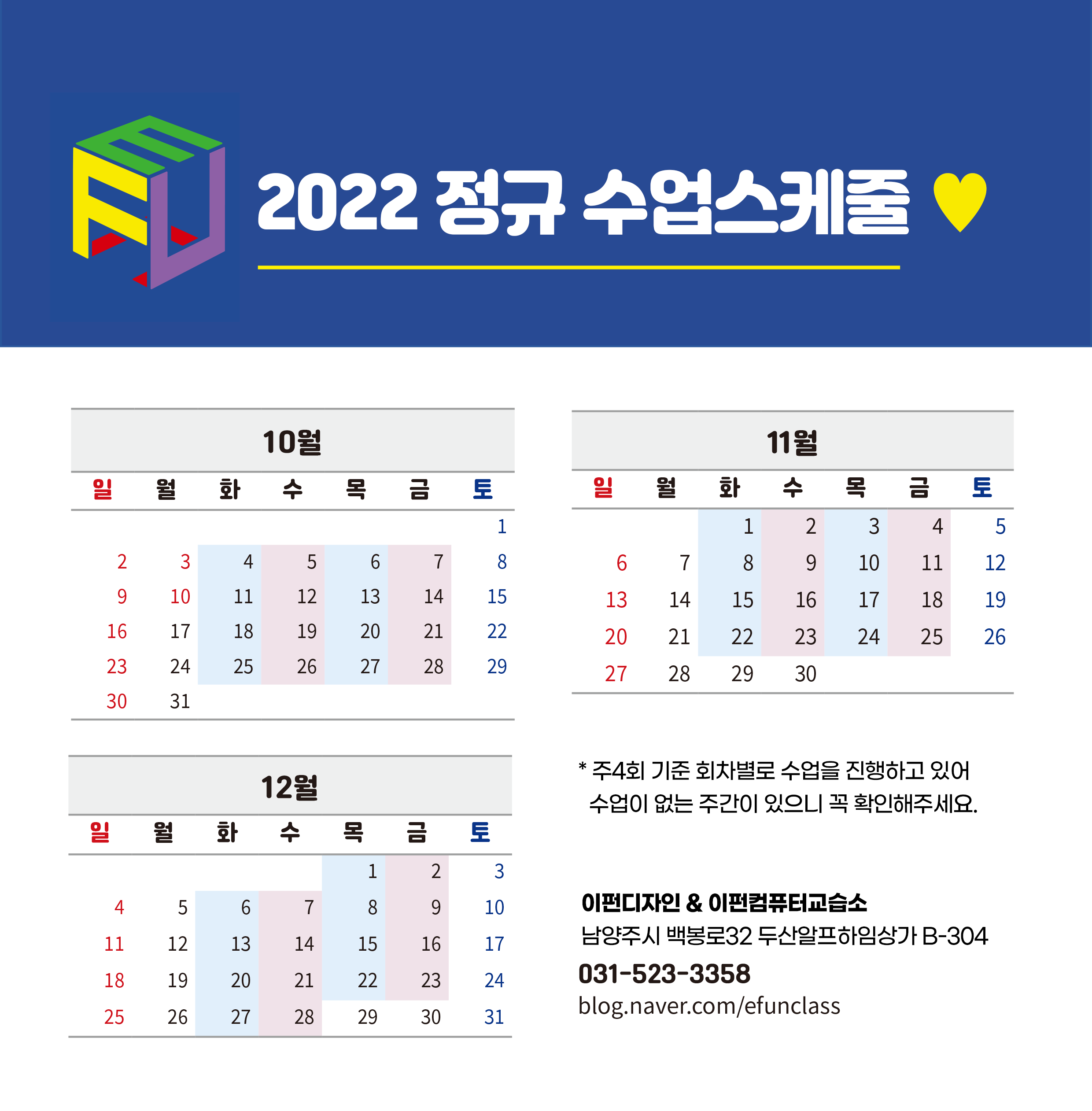 * 주4회 기준 회차별로 수업을 진행하고 있어, 수업이 없는 주간이 있으니 꼭! 확인해주세요.