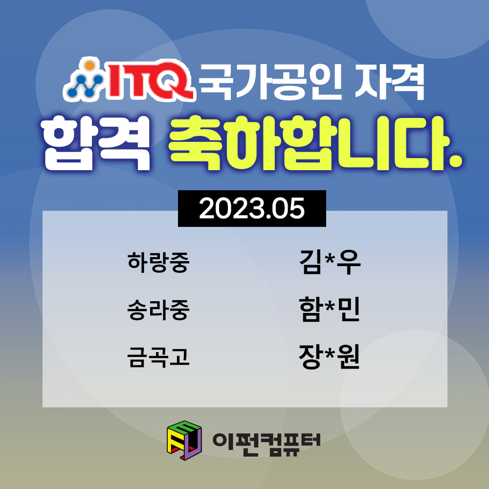 [23년 5월] 자격증 시험 합격을 축하합니다.