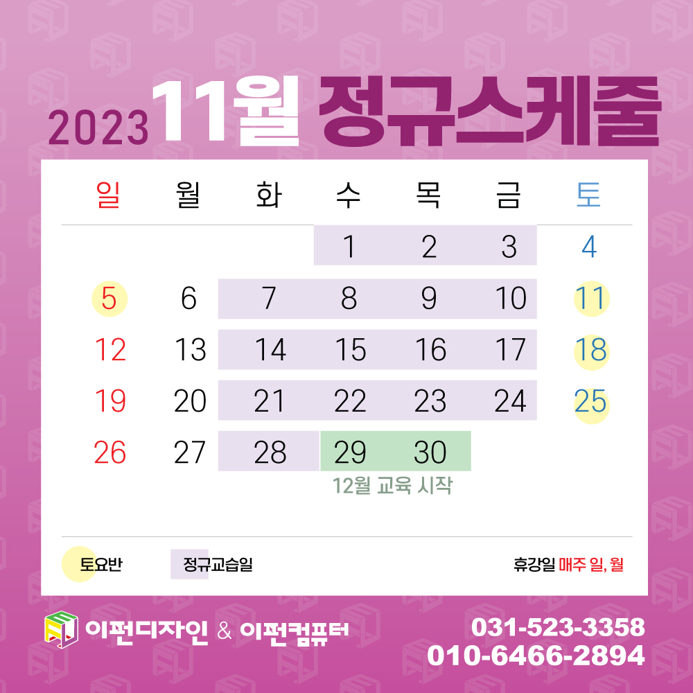 두산 알프하임 컴퓨터학원 이펀컴퓨터 이펀디자인 11월 스케줄