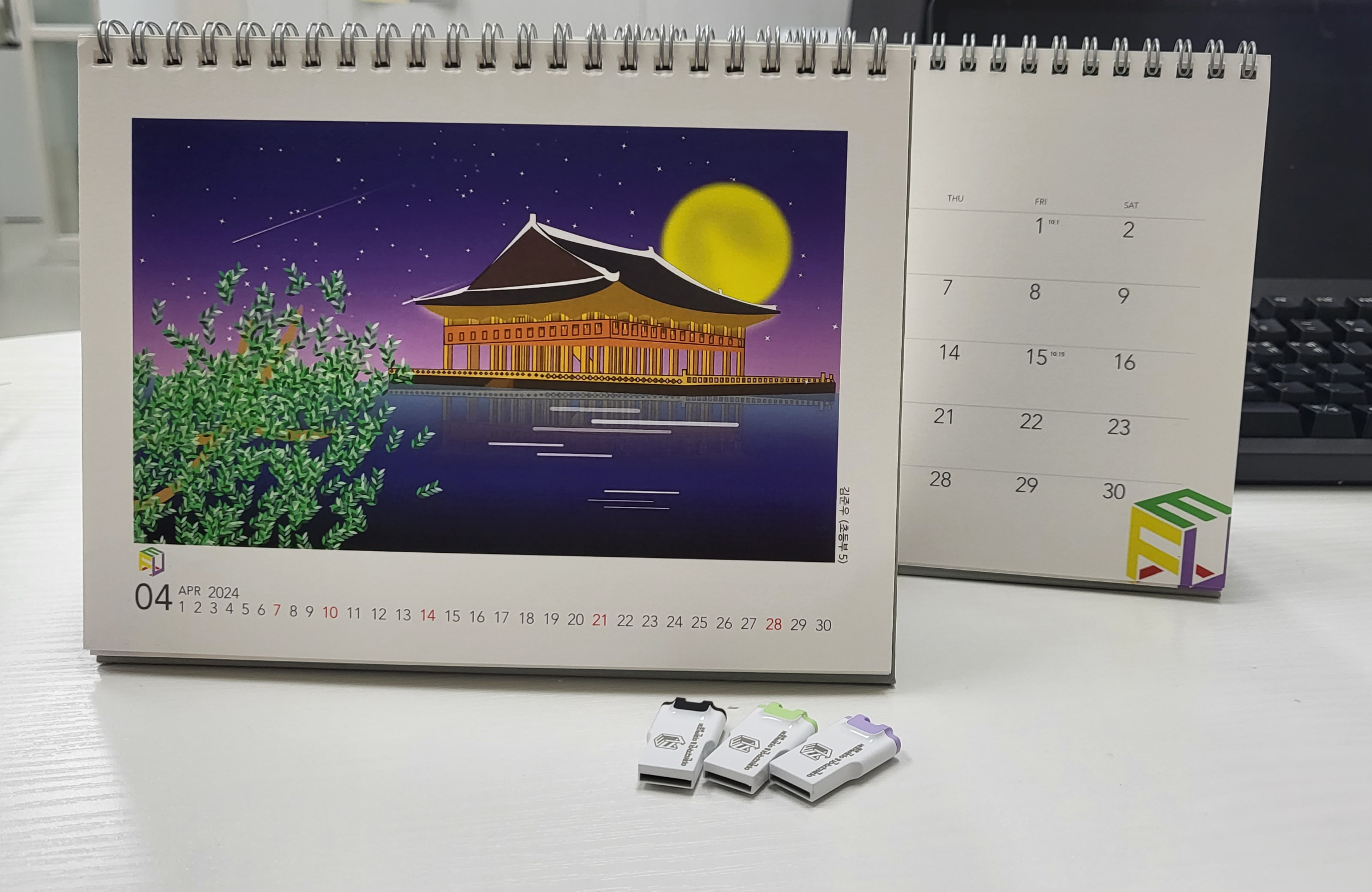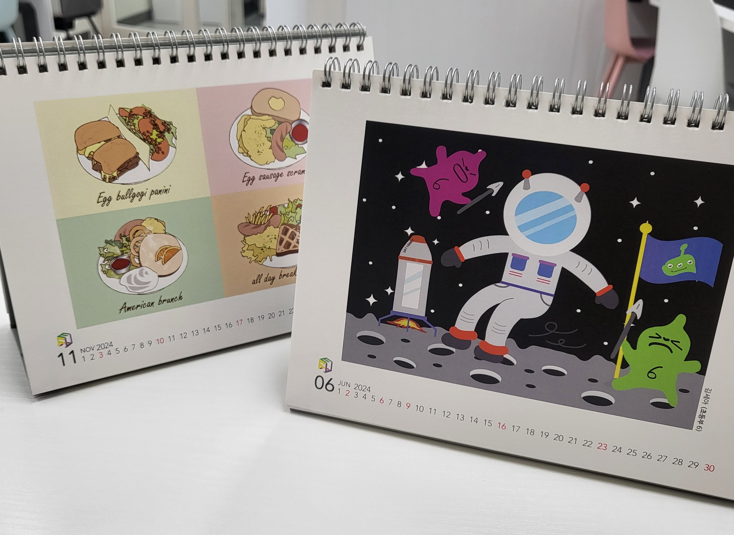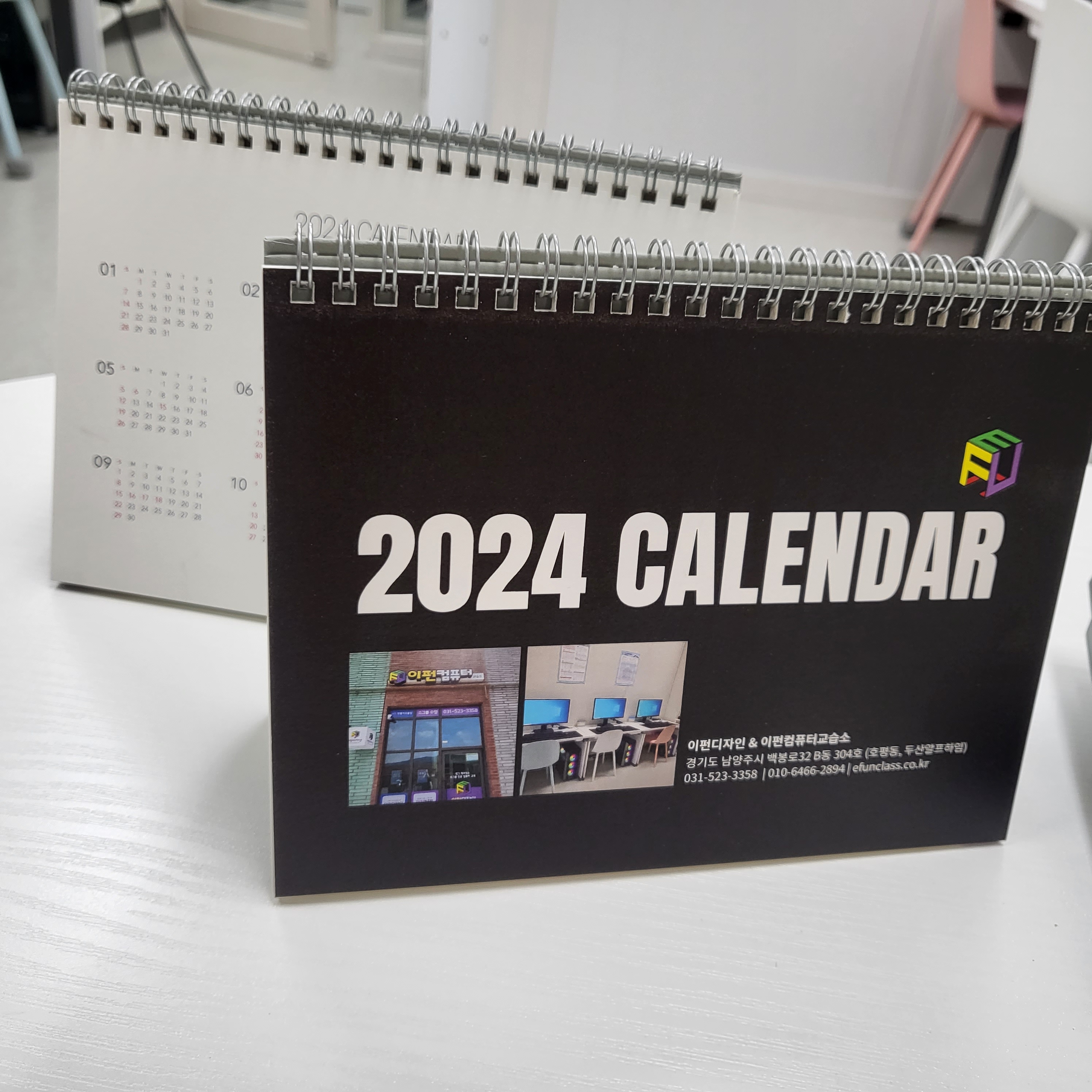 그중에서 "키즈 일러스트" 수업 중 진행한 장기프로젝트로, 일러스트 프로그램으로 드로잉이 어느정도 가능한 친구들이 직접 참여하여 그려준 일러스트 이미지를 모아 [ 2024 이펀컴퓨터 탁상달력 ] 을 제작하게 되었습니다.
