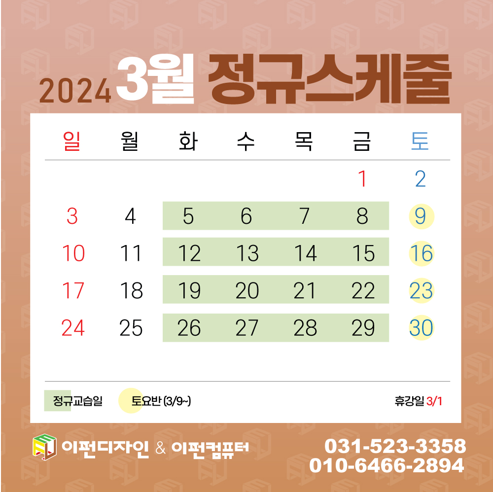 *3월 정규 교습일 : 3/5(화) ~ 3/29(금)