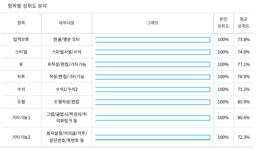 결시생을 제외하고 전부 ITQ 한글 시험에서 좋은 성적을 거두었습니다!
