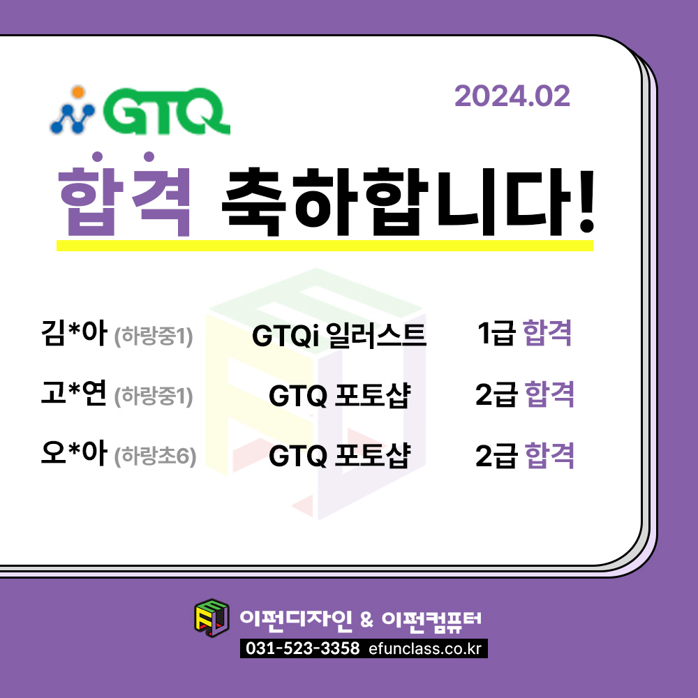 | [합격축하] ITQ 응시자 전원 합격 + 만점합격자!! (0) | 2024.03.14 |
