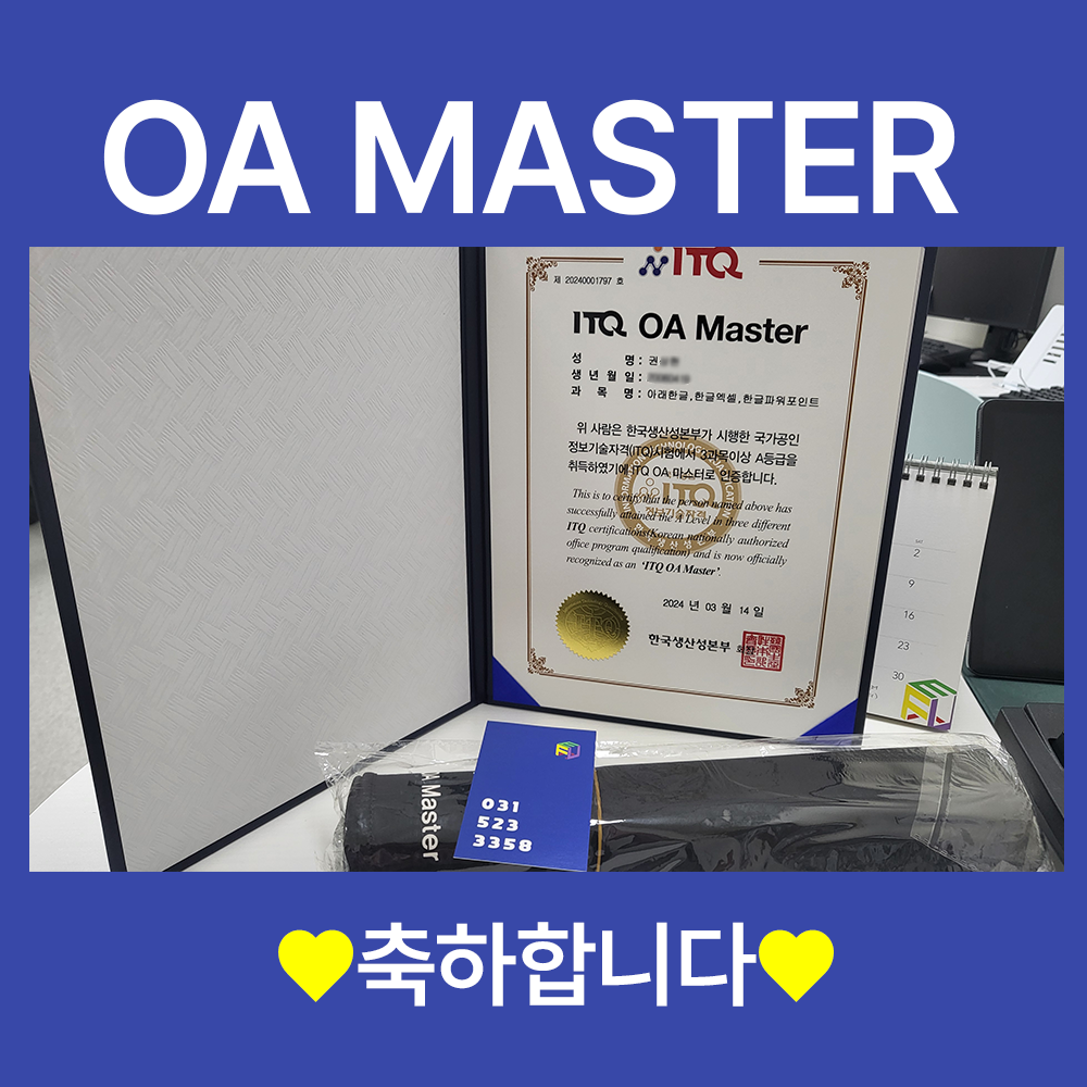 | [합격축하] ITQ 응시자 전원 합격 + 만점합격자!! (0) | 2024.03.14 |