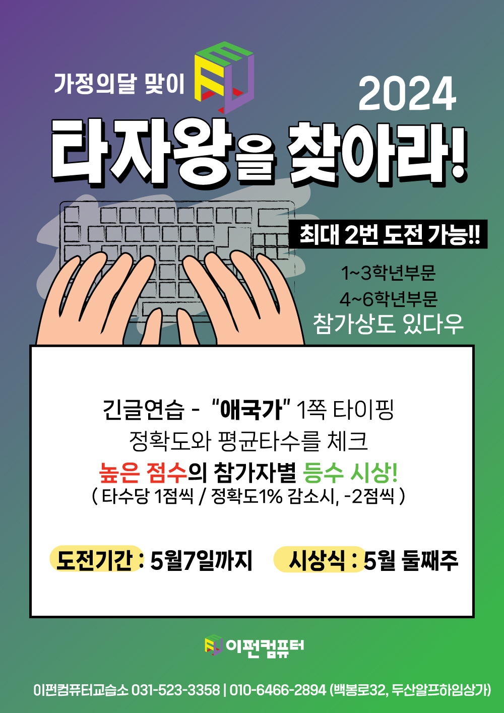 | [마감] 2024 여름방학 이펀 컴퓨터 특강 (초등학생부터 고등학생까지) (0) | 2024.06.11 |