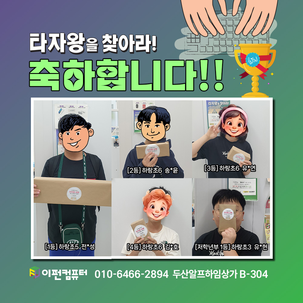 앞으로 우리 이펀 친구들이 타자연습을 더 열심히 할 수 있는 긍정적인 동기가 되었으면...★